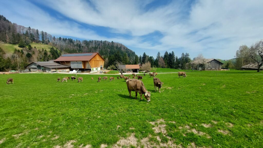 Wir sind ein Familienbetrieb auf rund 900 m ü. M. im mittleren Toggenburg, der schon seit über 25 Jahren biologisch bewirtschaftet wird. Hauptsächlich produzieren wir mit unseren Original Braunvieh-Mutterkühen Natura-Veal und Natura-Beef. Nebenbei betreiben wir auch noch Aufzucht und Weidemast. Jährlich mästen wir ca. 80 Truten für die Direktvermarktung. Zudem werden für die Direktvermarktung diverse Kräuter- und Teemischungen produziert. Auch bietet unser Betrieb ein wunderschönes altes Bauernhaus für Ferien in der Natur an.
